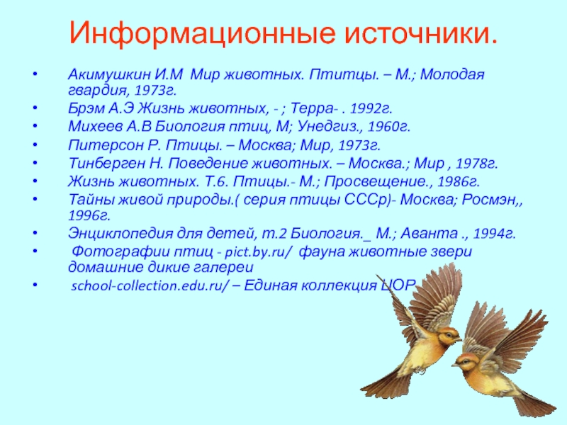 2. Насекомоядные птицы 2. Птицы побережий, водоемов и болот
