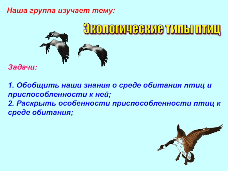 1. Растительноядные птицы 1. Водоплавающие птицы
