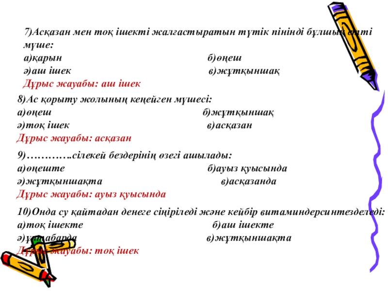 Дұрыс жауабы: тоқ ішек, өңеш, асқазан