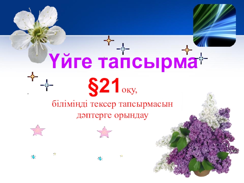 Ү. Үйге тапсырма: § 21 оқу, біліміңді тексер тапсырмысын жазбаша орындау