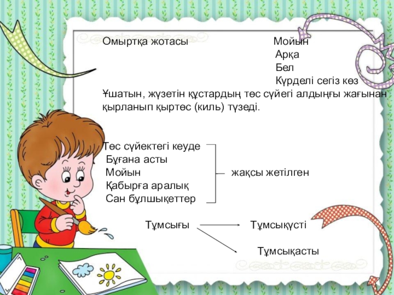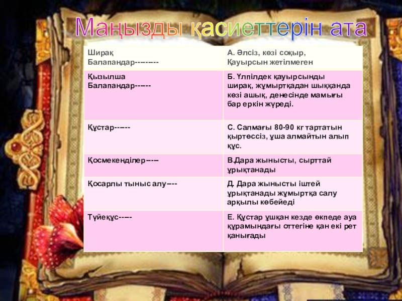Құрал жабдықтар: Құстардың қаңқалары, қауырсындары,