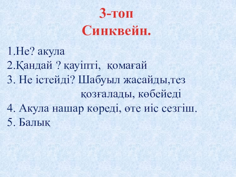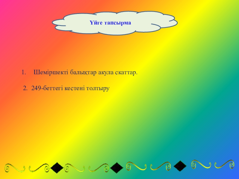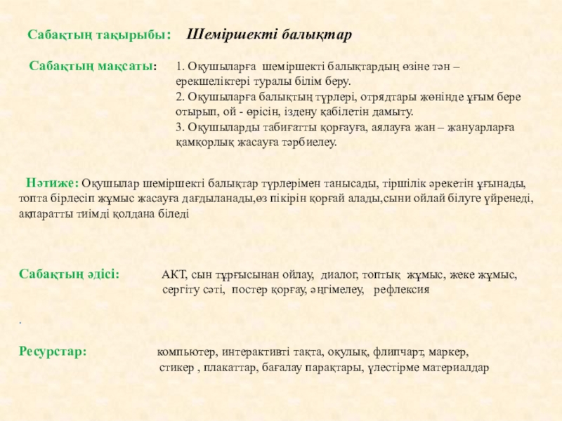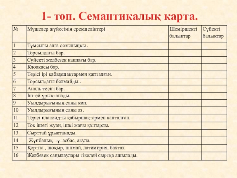 1. Оқушыларға шеміршекті балықтардың өзіне тән – ерекшеліктері туралы білім беру.