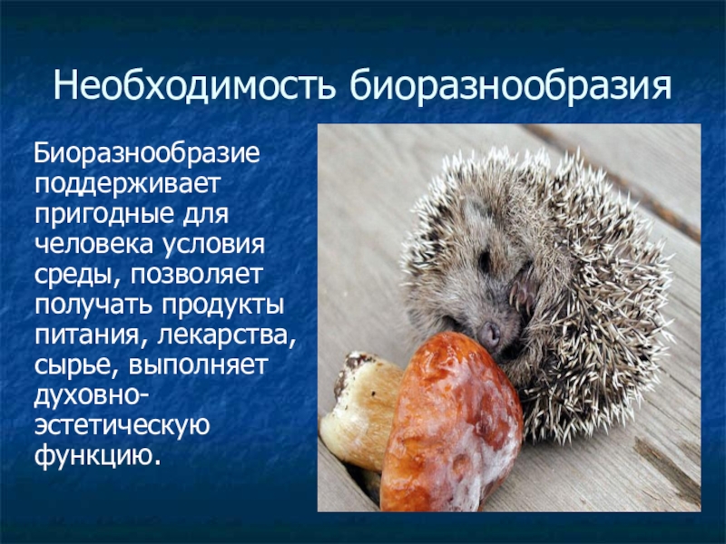 Биоразнообразие поддерживает пригодные для человека условия среды, позволяет