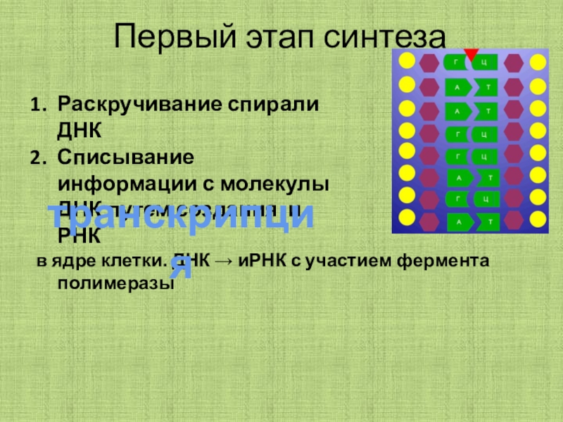 Списывание информации с молекулы ДНК путем создания и РНК