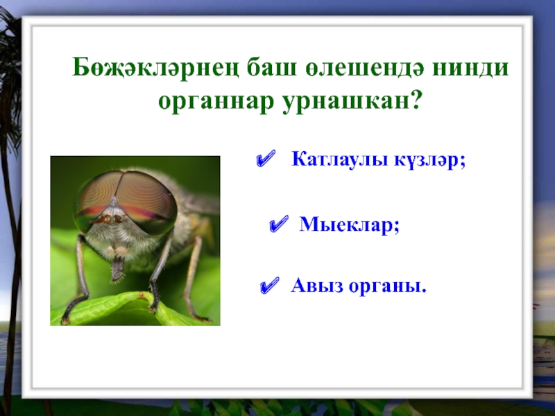 Слайд 3 Бөҗәкләрнең баш өлешендә нинди органнар урнашкан?