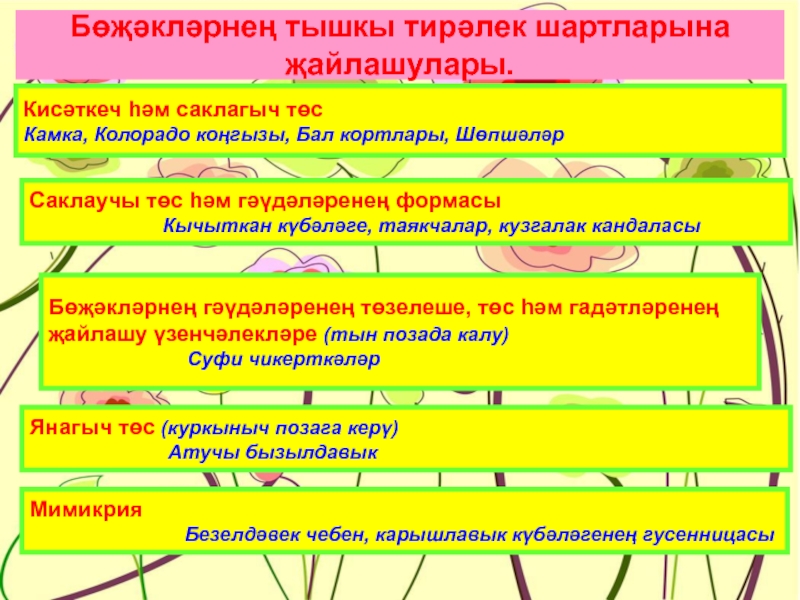Слайд 29Бөҗәкләрнең тышкы тирәлек шартларына җайлашулары.