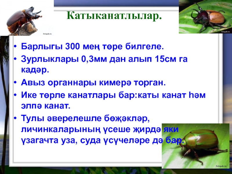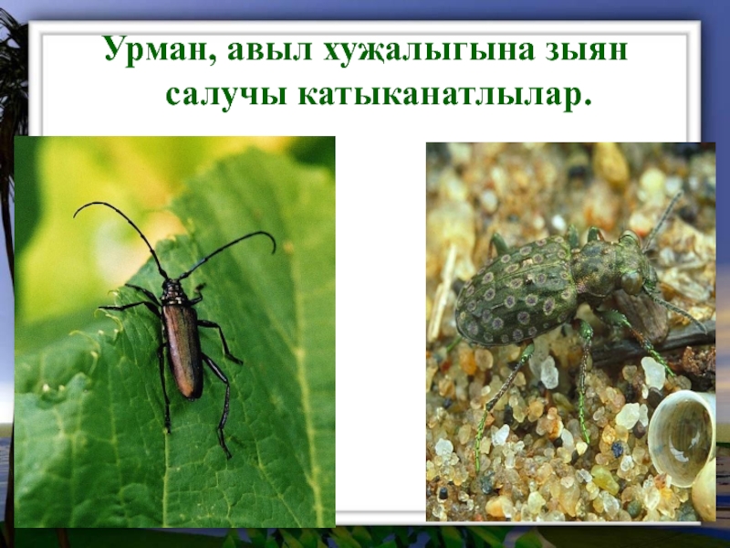 Слайд 20Урман, авыл хуҗалыгына зыян салучы катыканатлылар.