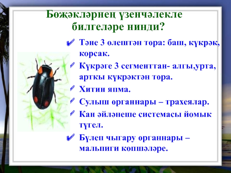 Слайд 2Бөҗәкләрнең үзенчәлекле билгеләре нинди?