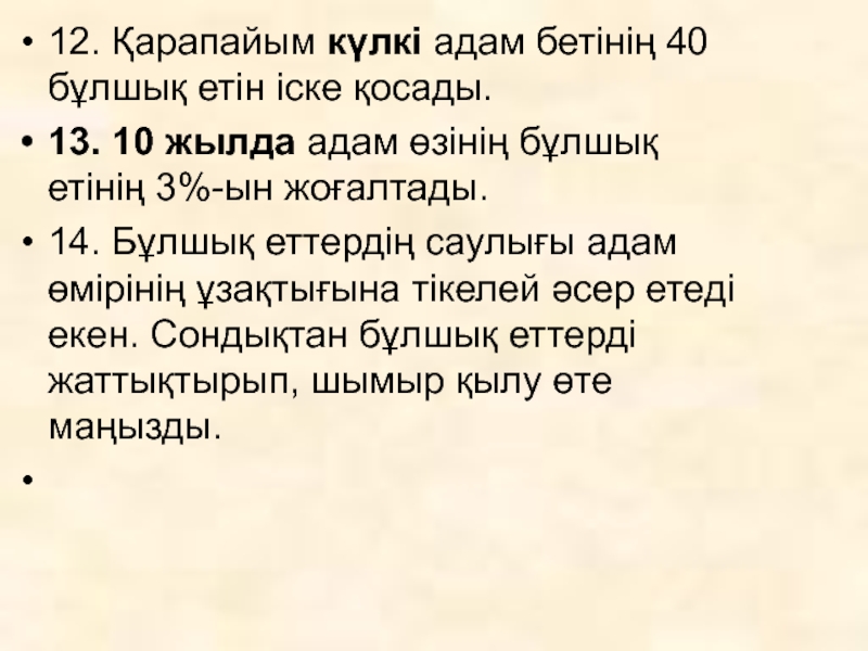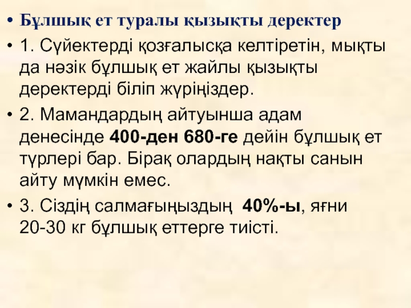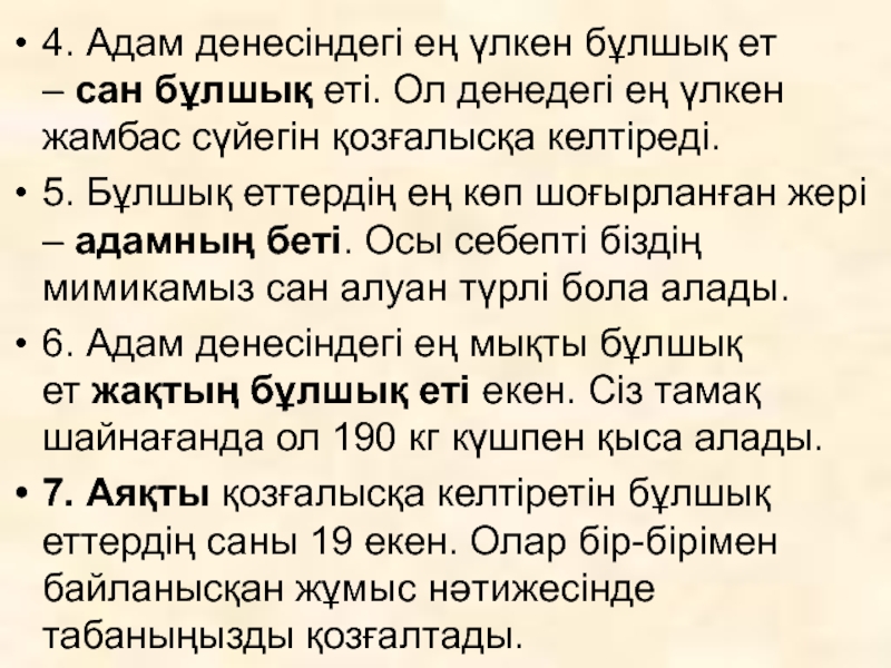 Слайд 41Бұлшық ет туралы қызықты деректер