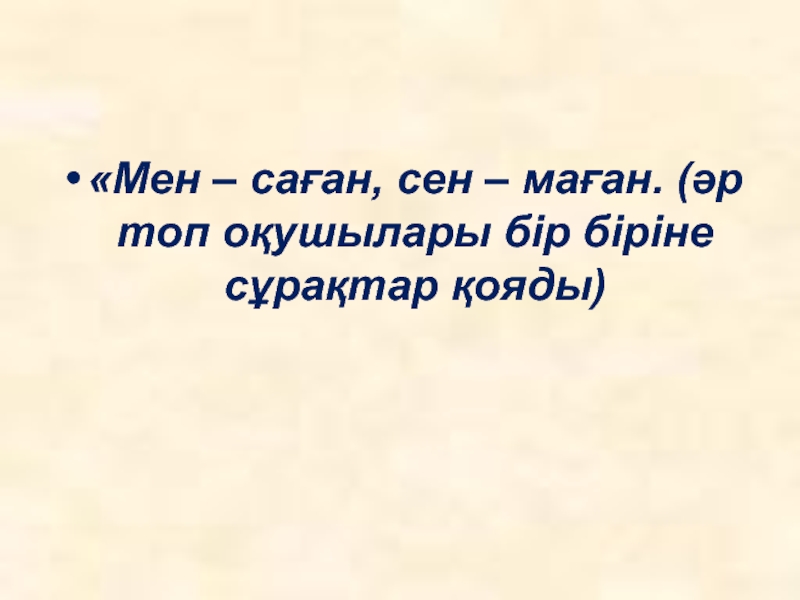 «Мен – саған, сен – маған. (әр топ оқушылары бір біріне