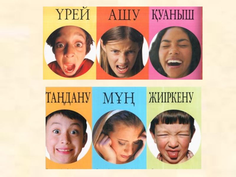 бетінен бірден көрінеді. Психологтар негізгі 6 эмоцияны бөліп қарайды және олардың әрқайсысы үшін өзіндік бет-әлпет тән, олар біздің тегімізде қалыптасқан.
