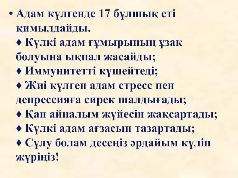 ♦ Күлкі адам ғұмырының ұзақ болуына