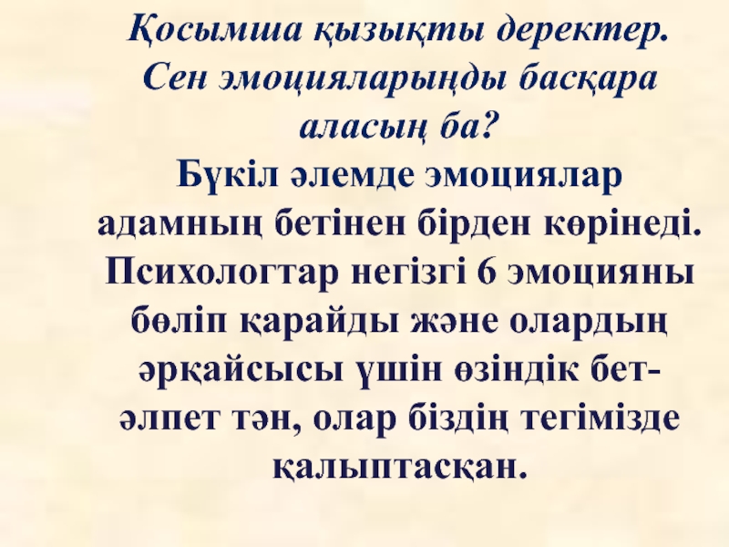 Слайд 46Қосымша қызықты деректер. Сен эмоцияларыңды басқара аласың ба?