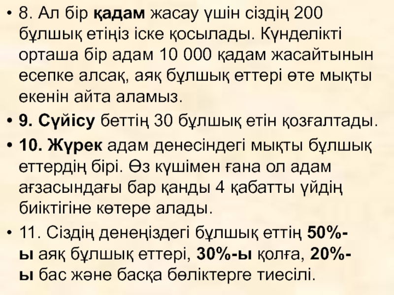 Слайд 438. Ал бір қадам жасау үшін сіздің 200 бұлшық етіңіз іске қосылады. Күнделікті