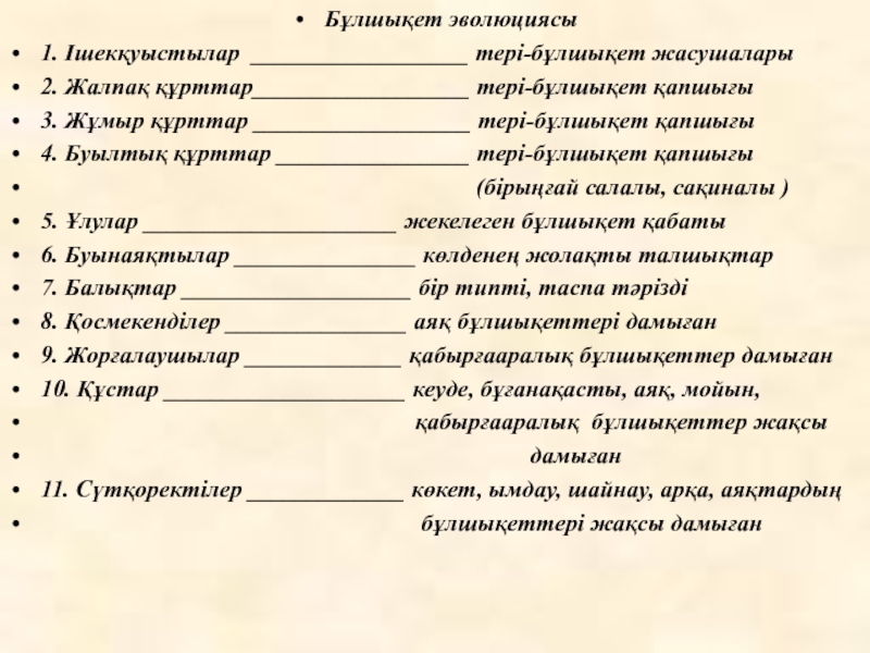 11. Сүтқоректілер _____________ көкет, ымдау, шайнау, арқа, аяқтардың