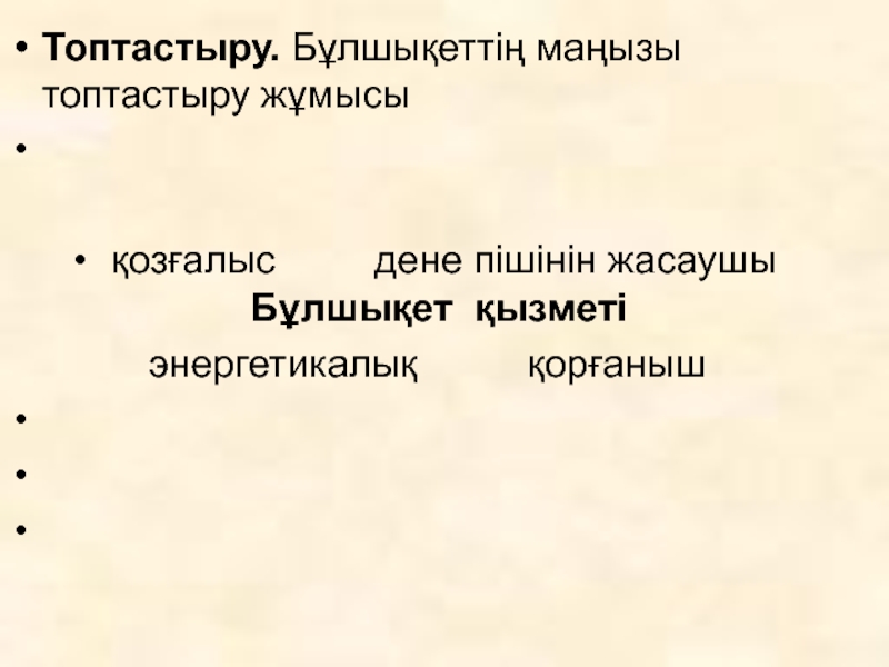 Слайд 17Топтастыру. Бұлшықеттің маңызы топтастыру жұмысы