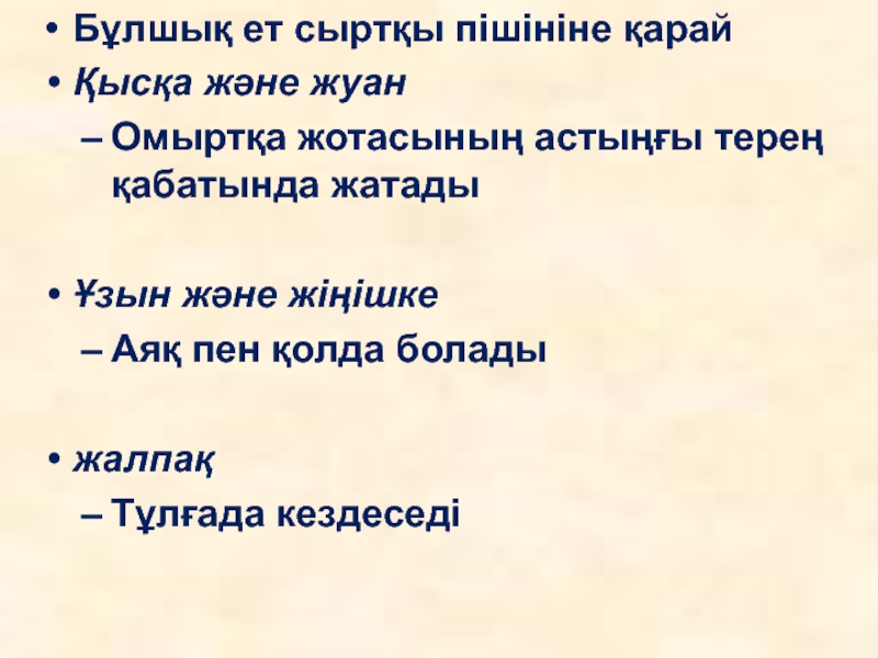 Бұғана жауырын, ортан жілік, кәрі жілік, башпай сүйектері