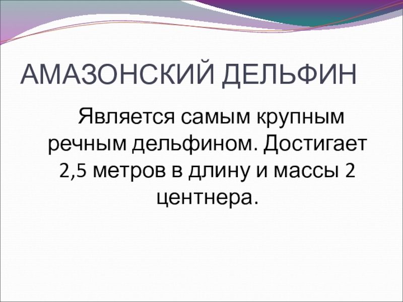 АМАЗОНСКИЙ ДЕЛЬФИН 	Является самым крупным речным дельфином. Достигает 2,5 метров в длину и массы 2 центнера.
