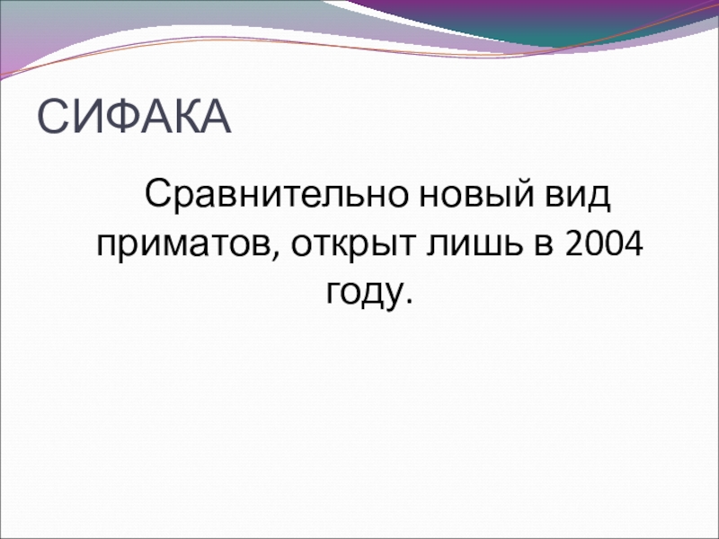 СИФАКА 	Сравнительно новый вид приматов, открыт лишь в 2004 году.