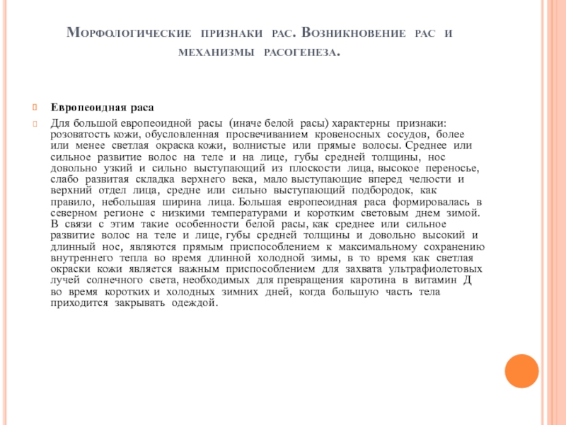 Слайд 3Морфологические признаки рас. Возникновение рас и механизмы расогенеза.
