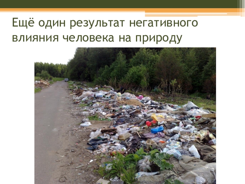 Слайд 5Ещё один результат негативного влияния человека на природу