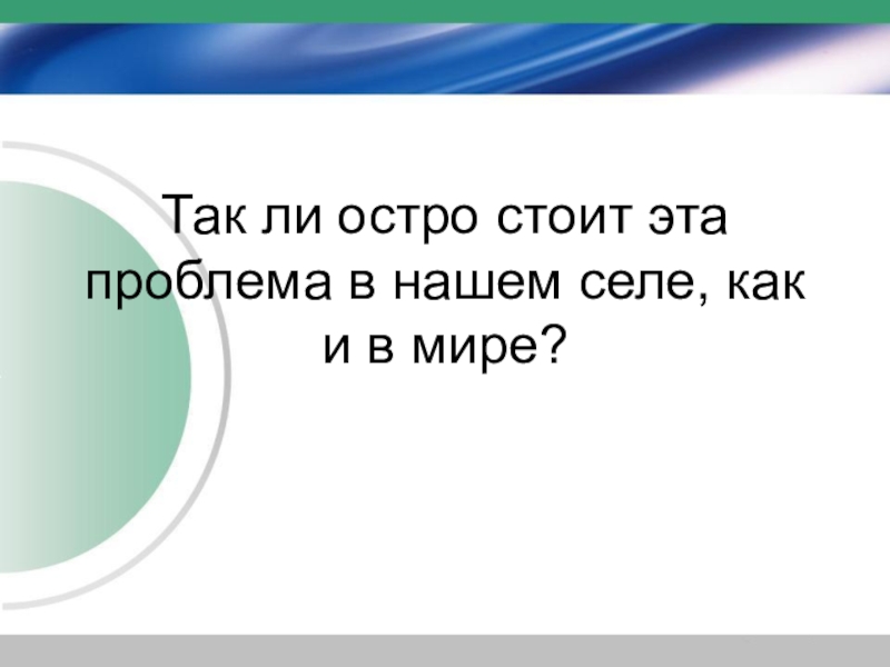 Слайд 2Так ли остро стоит эта проблема в нашем селе, как и