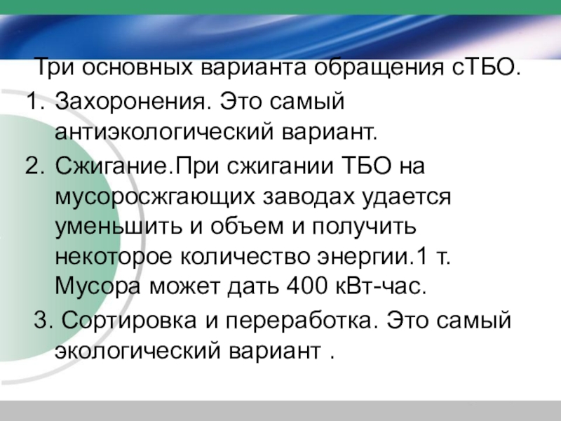 Слайд 7Ситуация с ТБО в России пока сложная т.к. сортировка затруднена по