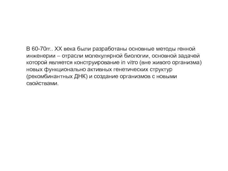 В 60-70гг.. XX века были разработаны основные методы генной инженерии –