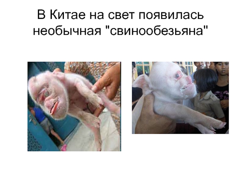 Слайд 28В Китае на свет появилась необычная "свинообезьяна"