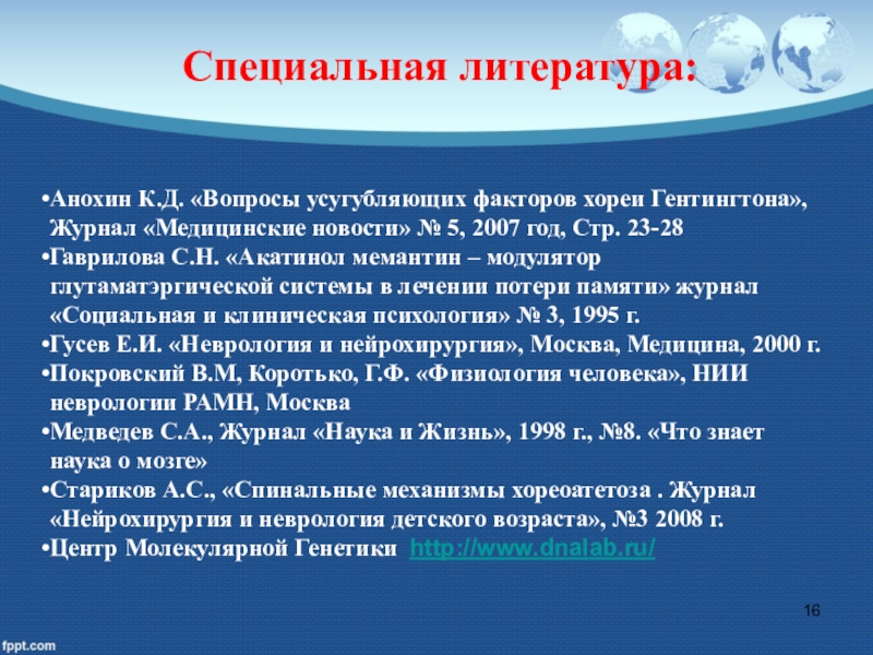 Специальная литература:
