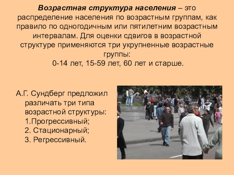 А.Г. Сундберг предложил различать три типа возрастной структуры: