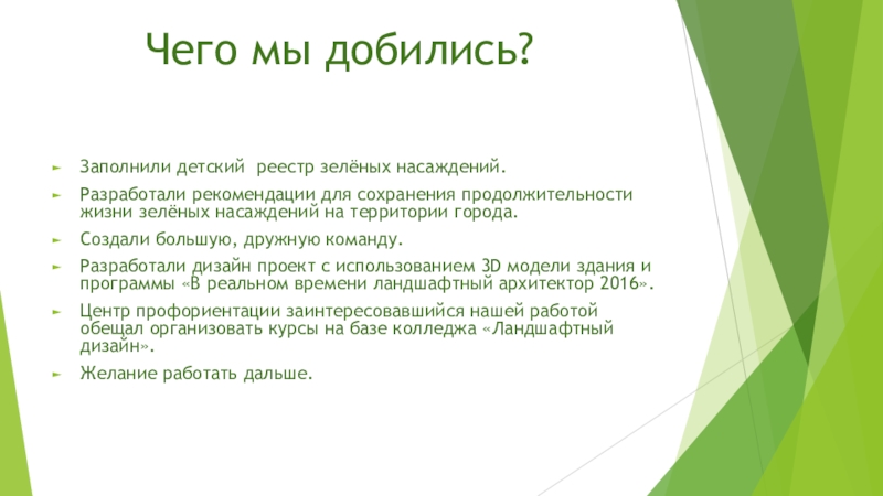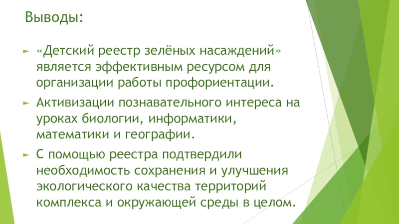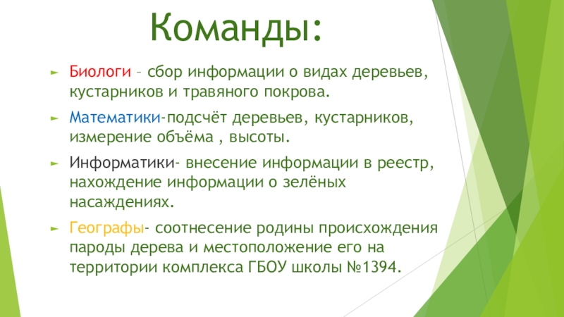 Информатики- внесение информации в реестр, нахождение информации о зелёных насаждениях.