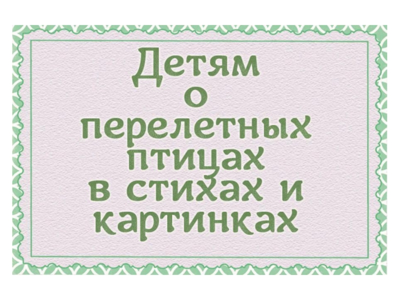 Презентация, доклад на тему Детям о перелетных птицах в стихах и картинках