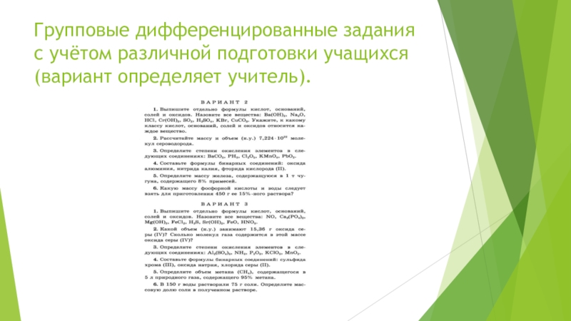 Слайд 12Групповые дифференцированные задания с учётом различной подготовки учащихся (вариант определяет учитель).