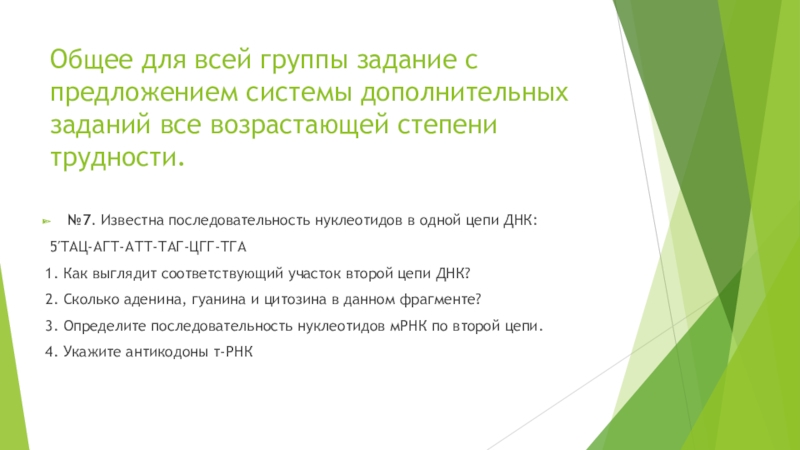 №7. Известна последовательность нуклеотидов в одной цепи ДНК: