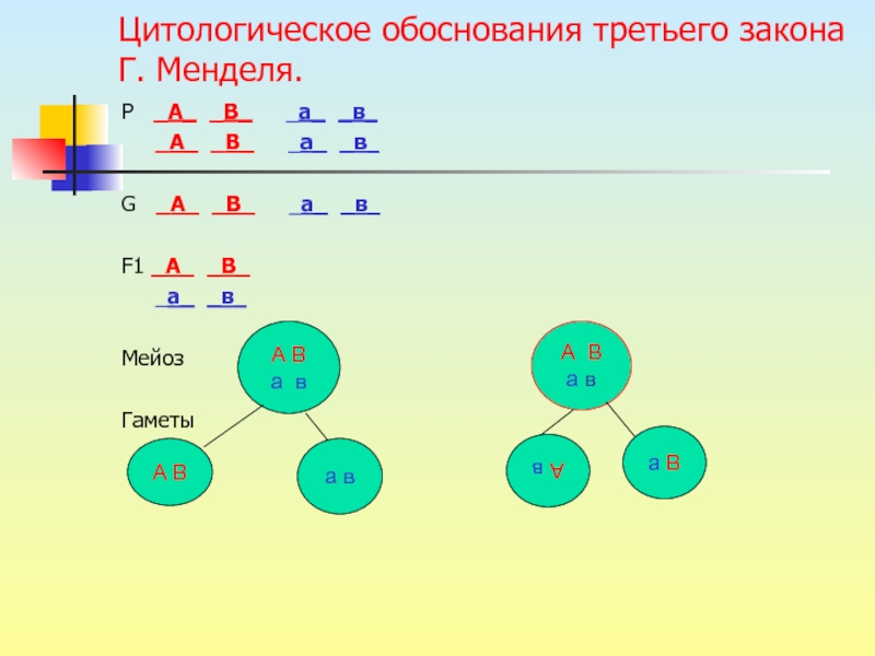 Цитологическое обоснования третьего закона Г. Менделя.Р  _А_ _В_   _а_ _в_   _А_ _В_