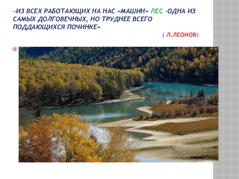 Слайд 3«Из всех работающих на нас «машин» лес -одна из самых долговечных,