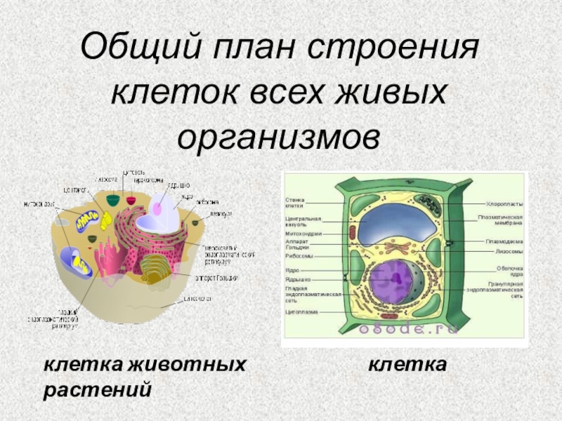 Слайд 6Общий план строения клеток всех живых организмов
