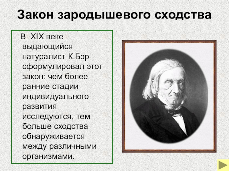 В XIX веке выдающийся натуралист К.Бэр сформулировал