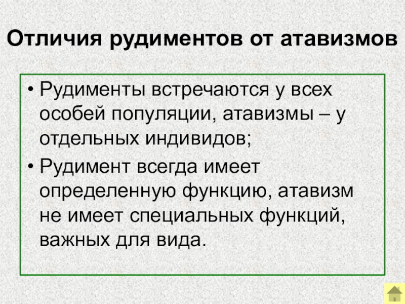 Слайд 28Отличия рудиментов от атавизмов