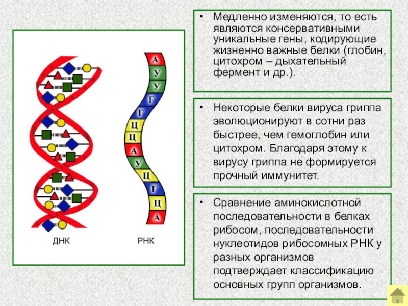 Слайд 10Медленно изменяются, то есть являются консервативными уникальные гены, кодирующие жизненно важные