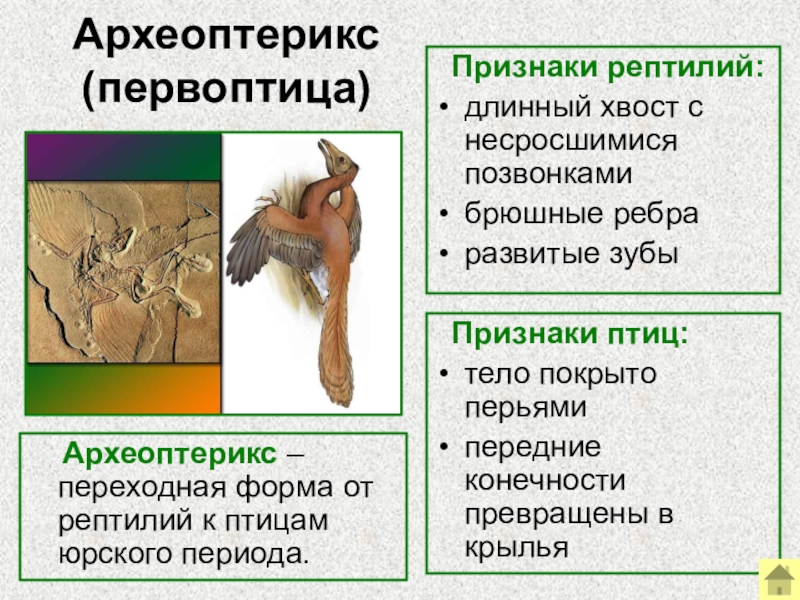 Археоптерикс – переходная форма от рептилий к птицам
