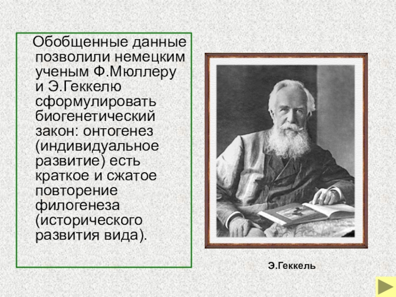 Слайд 33 Обобщенные данные позволили немецким ученым Ф.Мюллеру и Э.Геккелю сформулировать