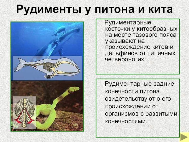 Слайд 24Рудименты у питона и кита