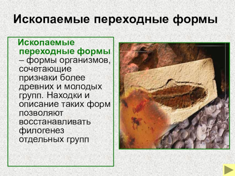 Слайд 7Ископаемые переходные формы