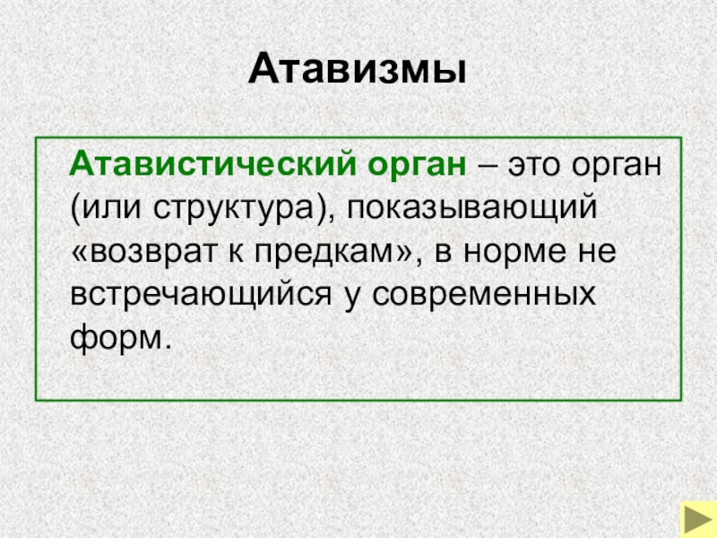 Атавистический орган – это орган (или структура), показывающий «возврат