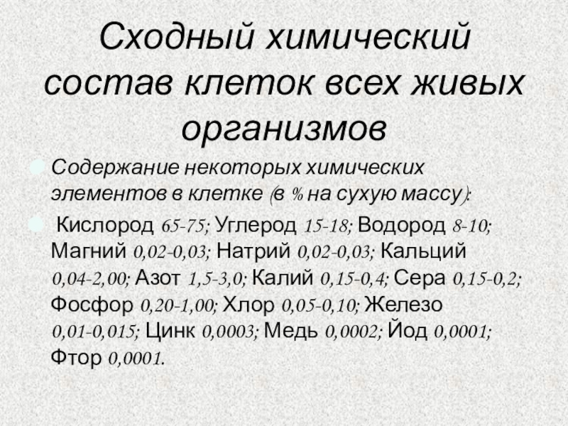 Слайд 5Сходный химический состав клеток всех живых организмов