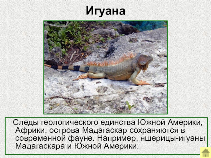 Америки, Африки, острова Мадагаскар сохраняются в современной фауне. Например, ящерицы-игуаны Мадагаскара и Южной Америки.