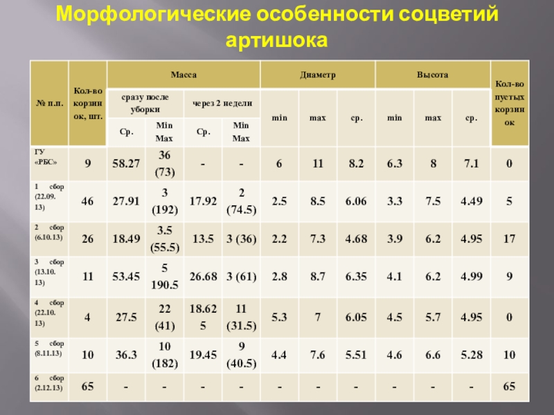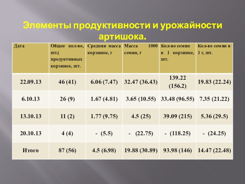 Слайд 15Элементы продуктивности и урожайности артишока.