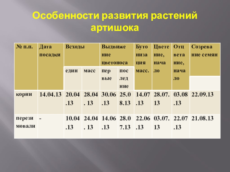 Задачи: Изучить особенности строения , развития, продуктивность артишока.